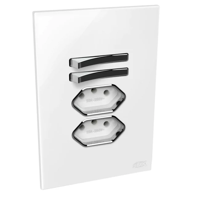 1 Placa 4X2 para 1 Módulo Tecla Dupla + 2 Tomadas - Policarbonato
