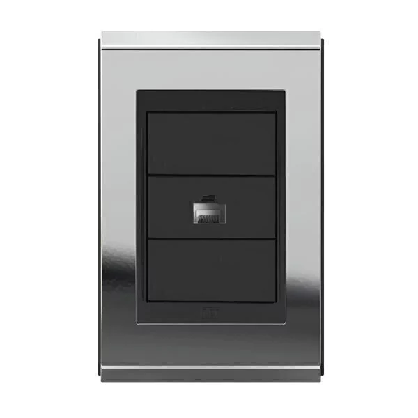 Conjunto 1 Tomada Rede RJ45 - Refinatto - Prata com Preto CPP033