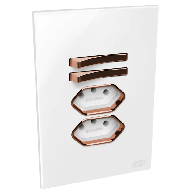 2 Módulos de Tomadas 20A - Branco e Ouro Rosé