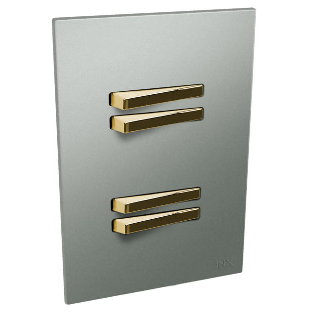 2 Módulos de Interruptores Duplos (2 Simples) - (Tecla Reta) Dourado