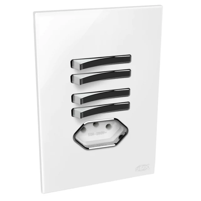 1 Placa 4X2 para 2 Módulos Tecla Dupla + 1 Tomada - Policarbonato