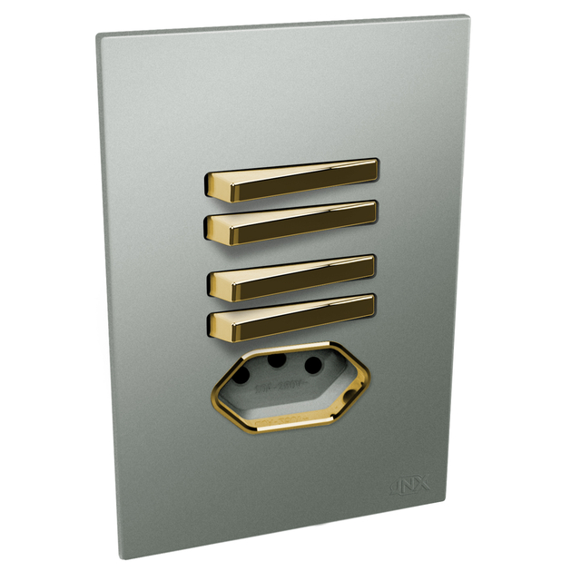 1 Placa 4X2 para 2 Módulos Tecla Dupla + 1 Tomada - Policarbonato