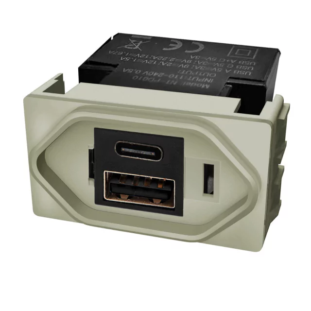 1 Módulo Tomada Carregador USB Tipo: A+C (3A) - Champanhe